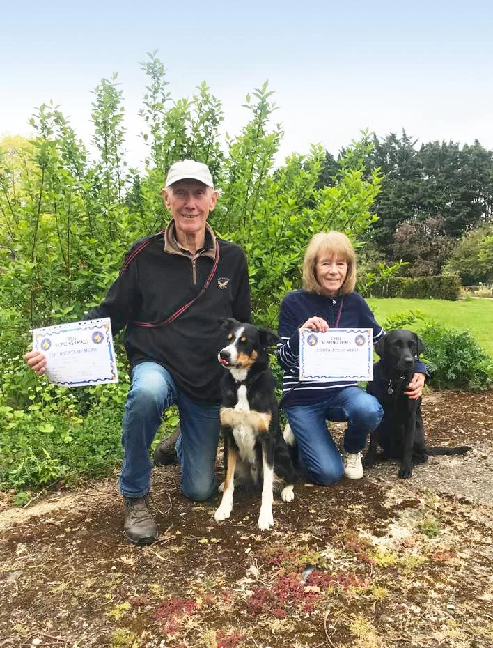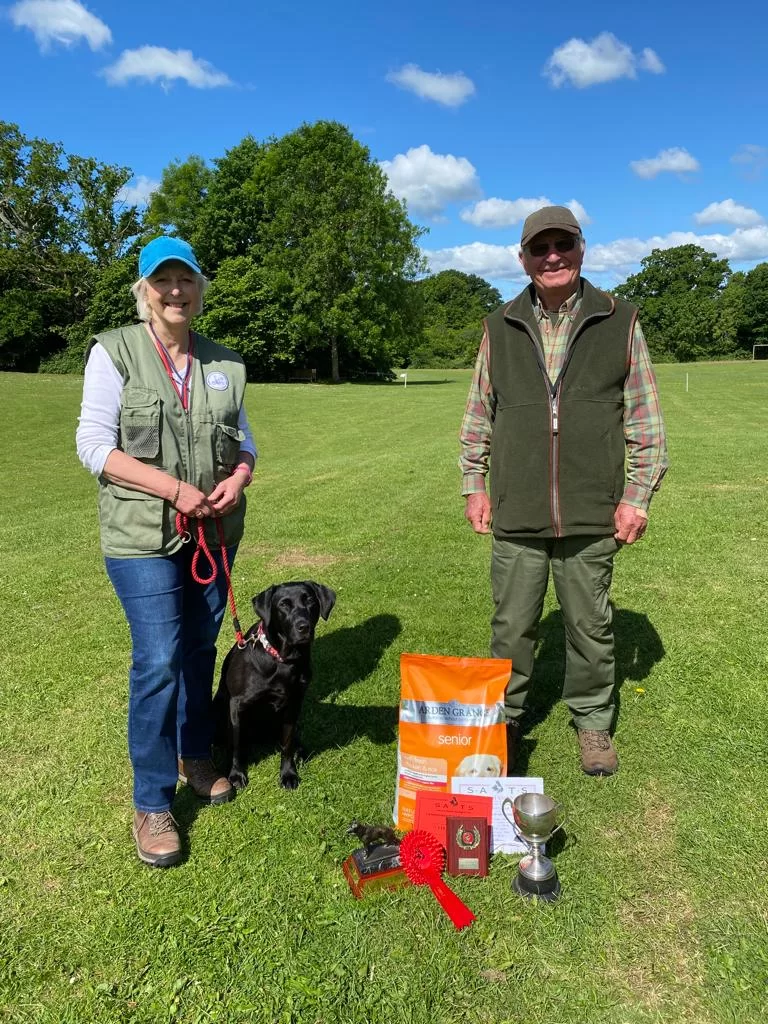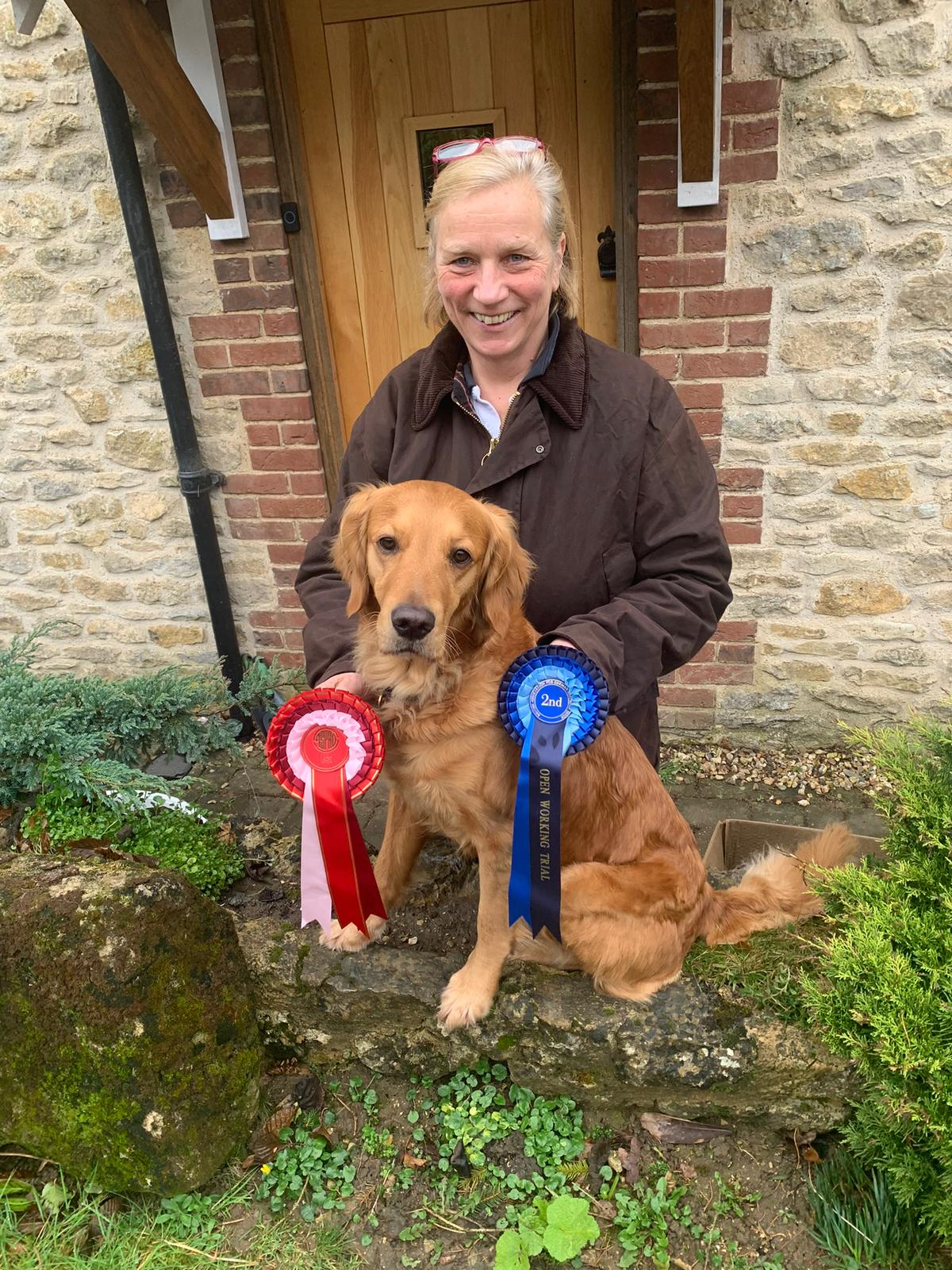Says Sharon: "Weather deteriorated with the day, so Search squares, Sit Stays and Retrieve were on horrible sticky mud and stubble and in the rain."