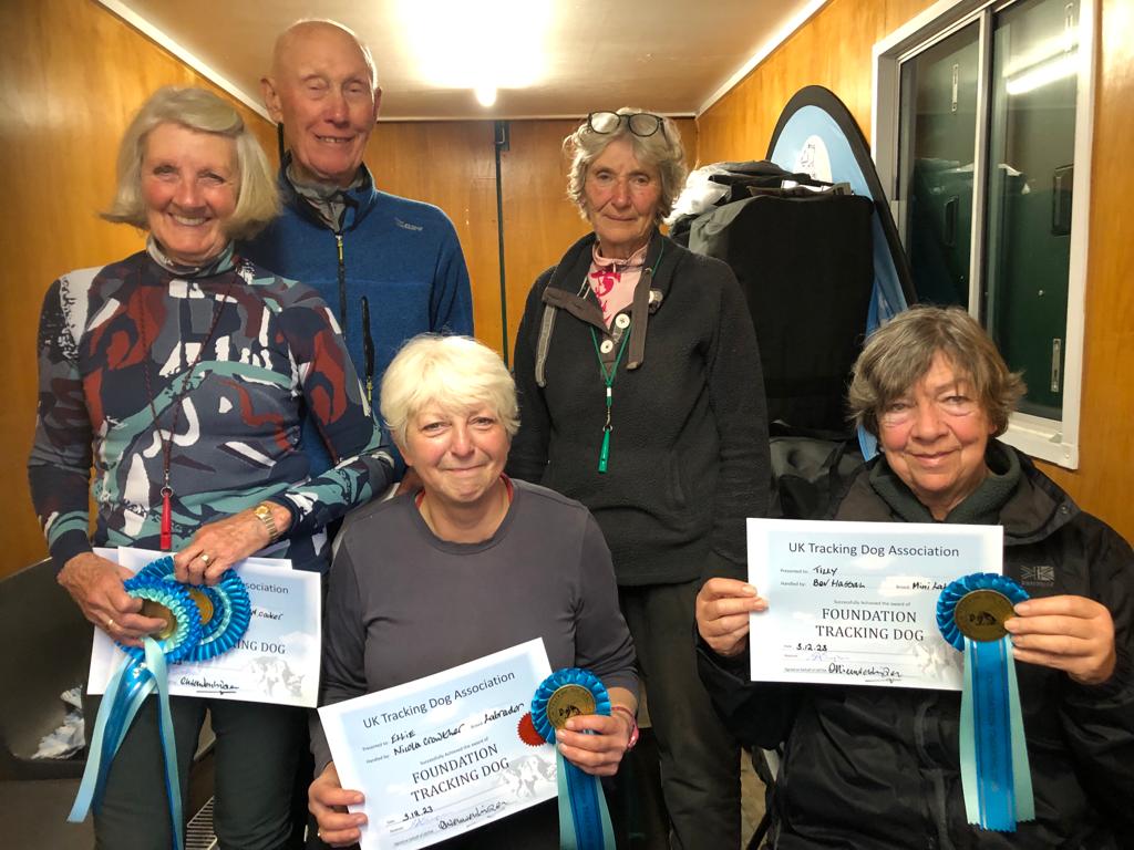 Congratulations to all the above and to those who didn’t quite make it today, we know that all your dogs are very good tracking dogs, but they were just thrown by the very difficult conditions.